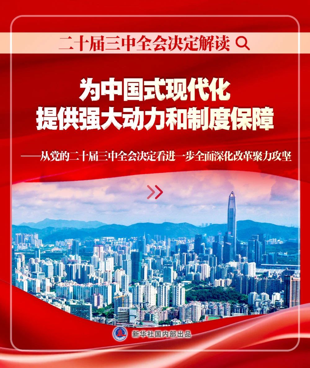 7月21日,《中共中央关于进一步全面深化改革、推进中国式现代化的决定》发布。新华社推出一系列解读报道,深入阐释党的二十届三中全会决定,..[2024-09-03]